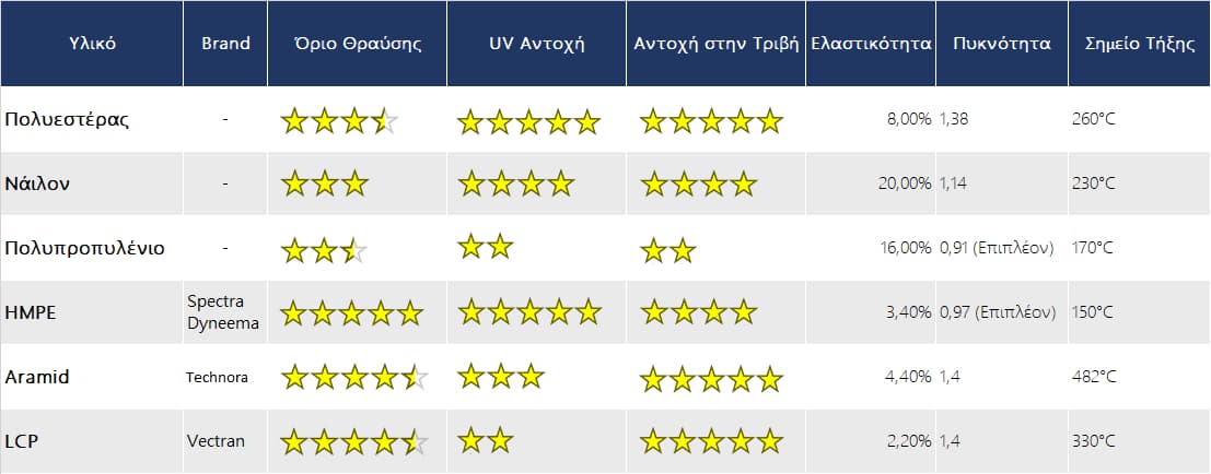 Υλικό ίνας σχοινιού και ιδιότητες